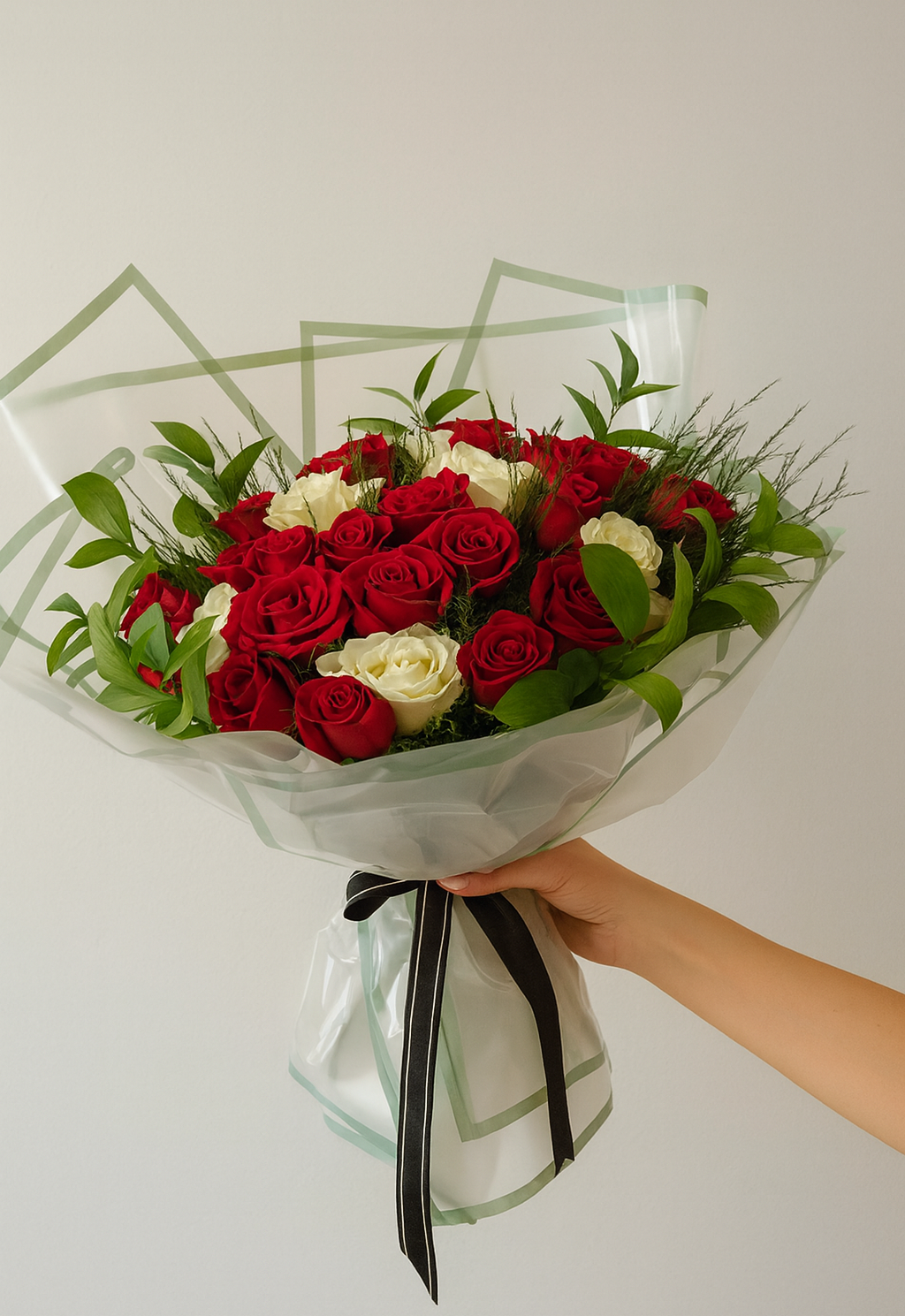 101 Red White Mix Premium Quality Roses, with high quality wrapper on average 60-70cm.