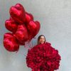 250 Red Roses and 10 Flying Heart Balloons