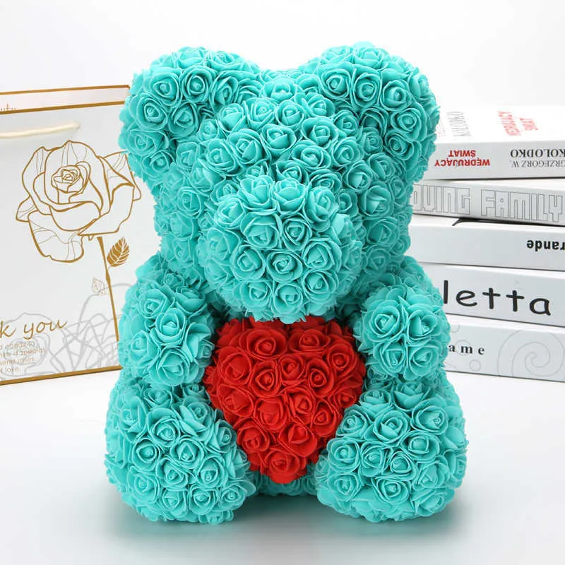 Aqua Blue Rose Bear designed with premium artificial endless roses. All colors are carefully delivered in a transparent special gift box.